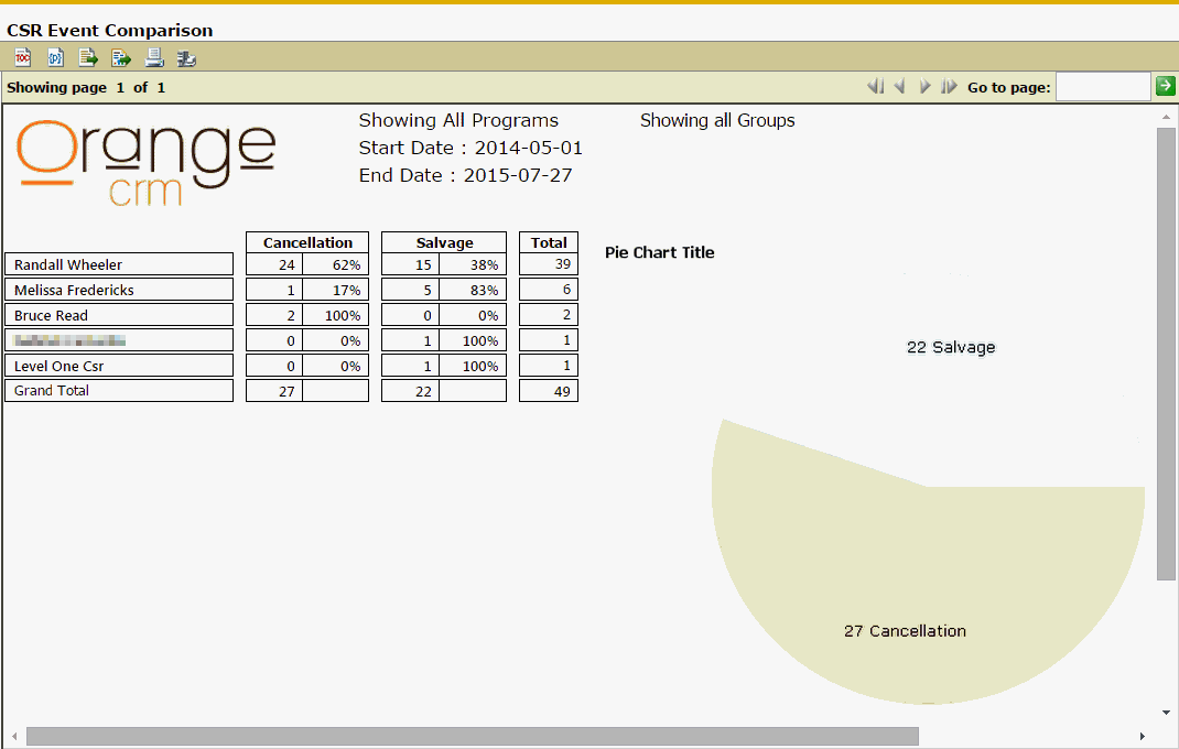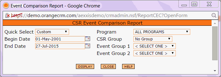 The CSR Event Comparison Report allows you to choose any two Event Groups for a side by side comparison of performance.