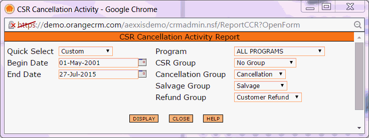 The CSR Cancellation Activity Report allows you to compare the number of CSR cancellations and salvages against the number of refunds issued.
