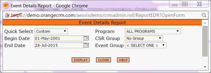 To run this report, go to the Events menu on the home page and click on CSR Event Comparison.