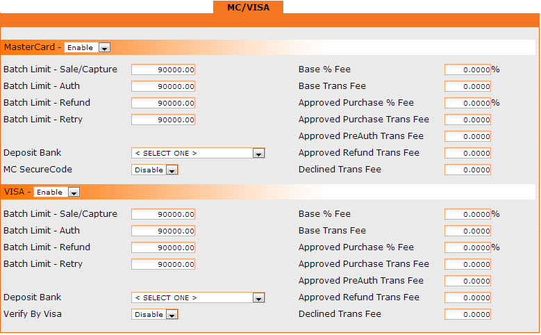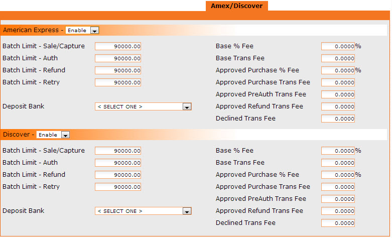 Enable All Processing - Switches MC/Visa, Amex and Discover to enabled mode. Each credit card type will still need their limits set on their respective tabs.