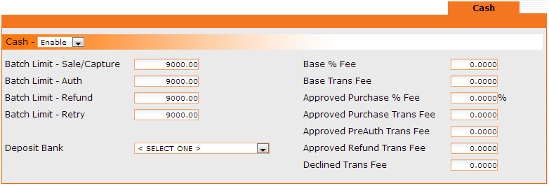 Flat Fee/Escrow - Enter the flat fee and/or the escrowed amount for the merchant bank here if it is the same or applies to all of the Credit cards, ACH or Cash used by this merchant bank. The escrow field is for any escrow amount your bank may set aside to cover any chargebacks (see bank's User Agreement for more information).